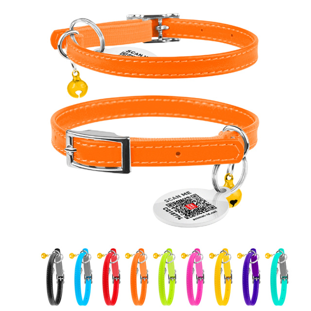 UA MarketЛьвівLapaGrafa | Нашийники, повідки, рулетки, шлейки, адресники, аксесуариТовари АмуніціяНашийник для котів шкіряний WAUCAT Glamour з QR паспортом, без прикрас, XXS, Ш 9 мм, Дов 22-30 см помаранчевий