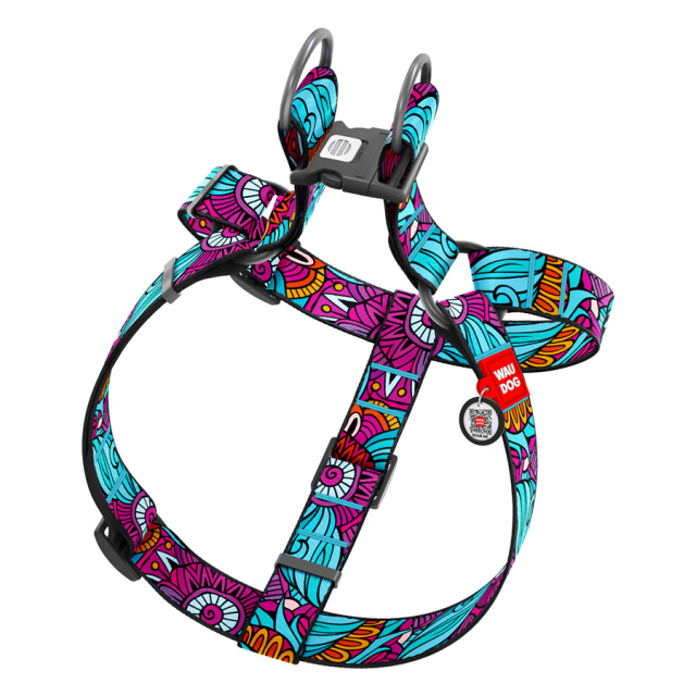 UA MarketЛьвівLapaGrafa | Нашийники, повідки, рулетки, шлейки, адресники, аксесуариТовари АмуніціяШлея для собак WAUDOG Nylon з QR паспортом, малюнок «Літо», пластиковий фастекс, XL, Ш 35 мм, А=В 70-100 см
